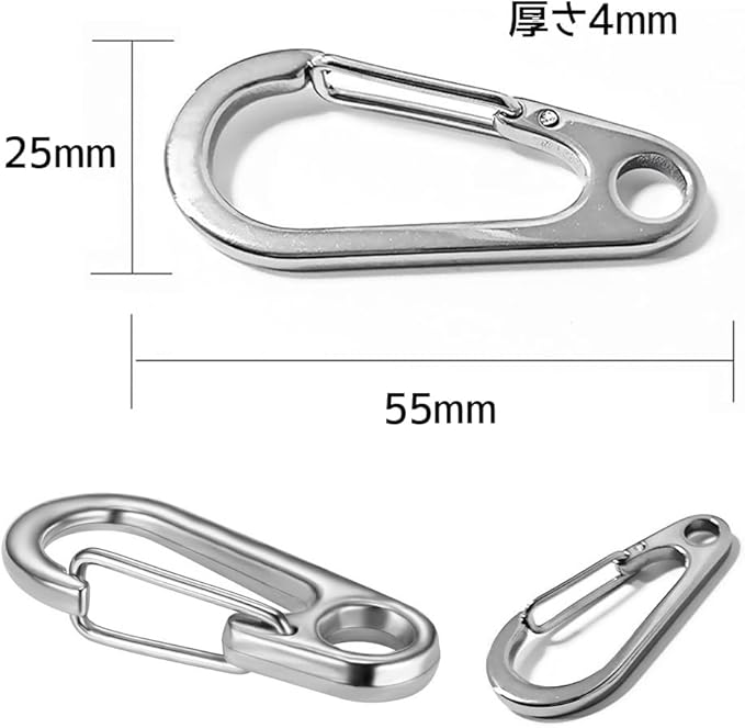 YFFSFDC カラビナ スナップフック 10個入 ミニカラビナ スナップフック SUS304 ステンレス鋼 軽量 耐久性 おしゃれ 多機能 スプリングフック 耐食性 (5.5cm) | oioioichan