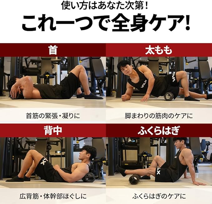 ✅使い方は無限大!これ一つで全身ケア! 首筋の緊張や肩こり、広背筋や体幹部の柔軟性UP、さらに太ももやふくらはぎなど