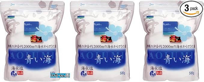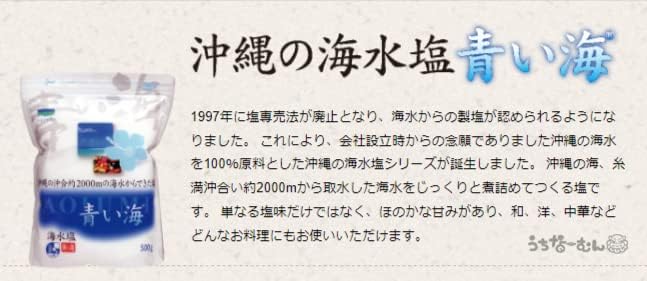 沖縄の海水塩 青い海 500g 3袋 + うちなーむんシール