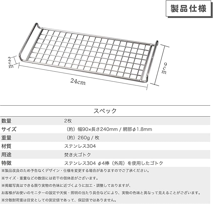 特徴:ステンレス304 φ4棒(外周)を使用したゴトク