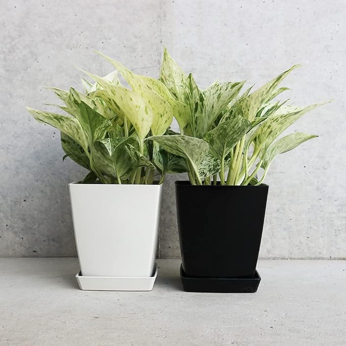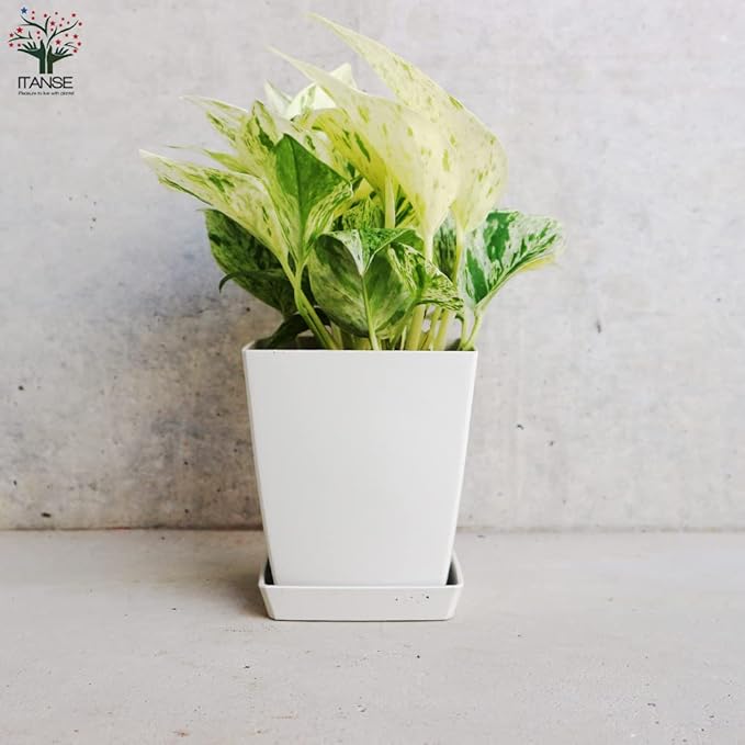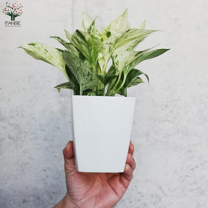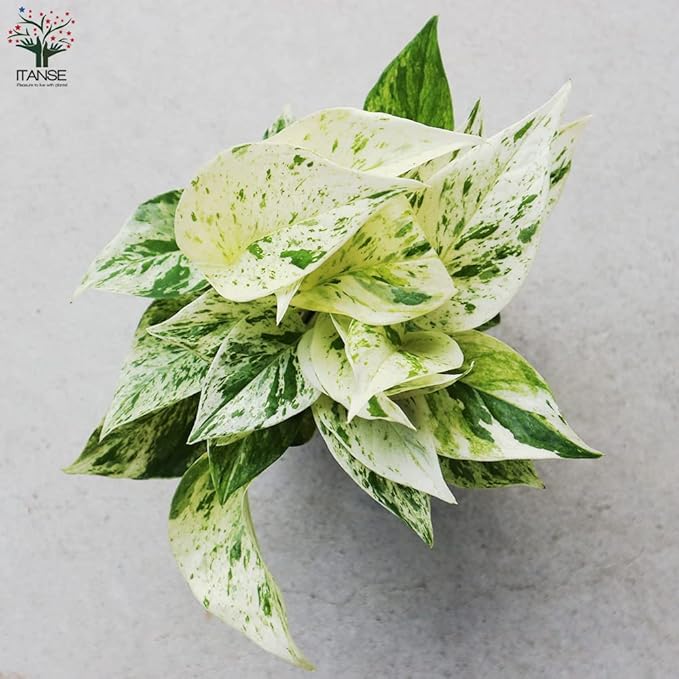ポトス マーブルクイーン 角鉢4号 1個売り【品種で選べる観葉植物・リビングやオフィス向きサイズ】学名:Epipremnum aureum ‘Marble Queen’/サトイモ科エプピレムヌム属 非耐寒性常緑つる性多年草/原産地:ソロモン諸島/別名:黄金カズラ、オウゴンカズラ、ポトス・マーブル、デビルズアイビー、プレムヌム・アウレウム●他のポトスにはない白く大きな斑が特徴の、葉を楽しむ観葉植物です。葉の緑と斑の比率が逆転しており、ほとんどが白い斑で、絵具を飛ばしたように、本来の葉の緑が点在しています。そ | oioioichan