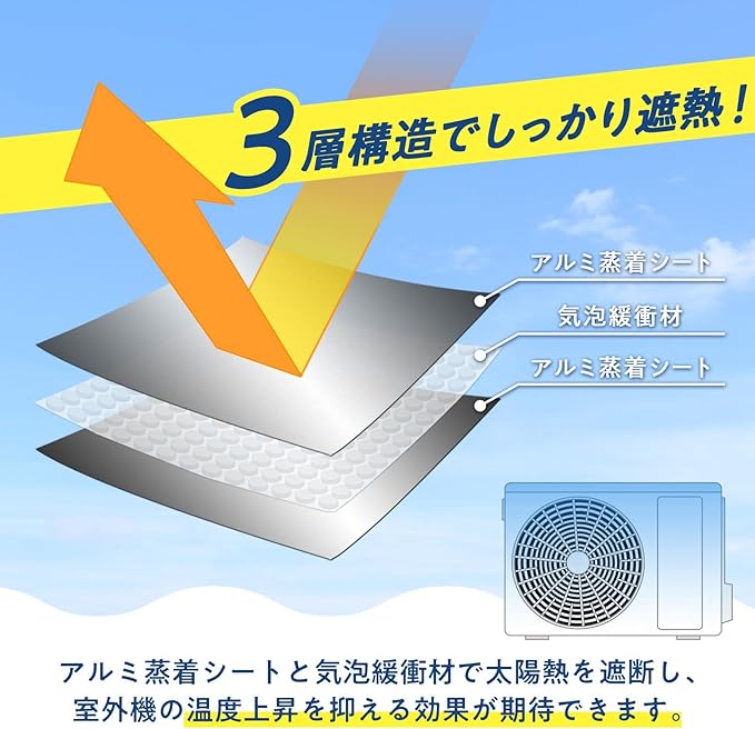 3層構造の遮熱シートで、室外機を日差しからガード!