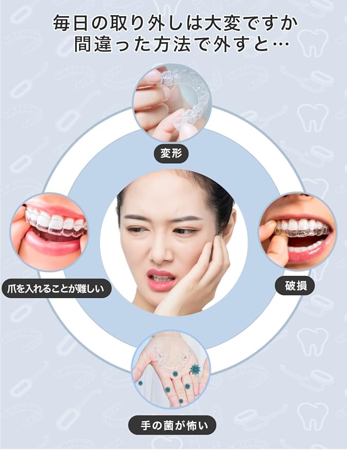 【BPAフリーで安全安心】級素材で作られたアライナーの着脱に必要なアイテム。