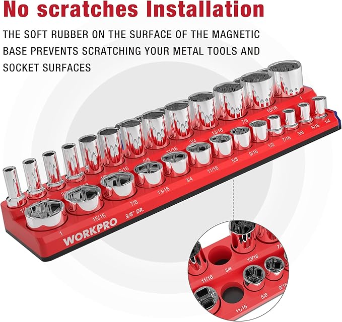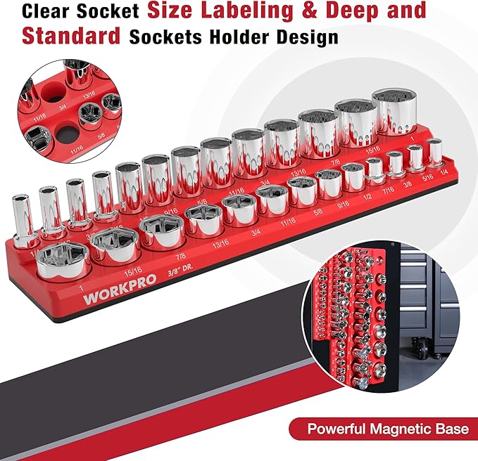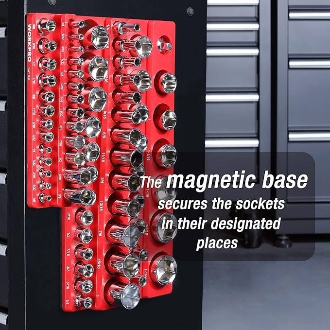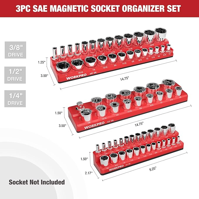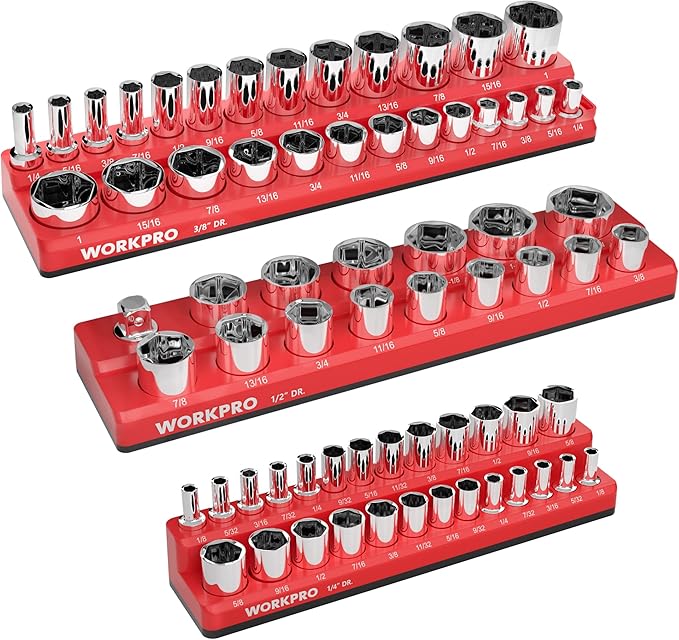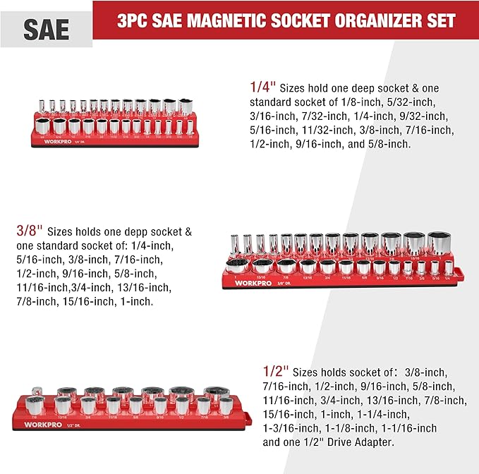 WORKPRO 磁気ソケットオーガナイザーセット ソケットホルダー3点セット 1/4インチ 3/8インチ 1/2インチ ドライブSAEソケットトレイ付き 68個の標準サイズと深いサイズのソケットを収納 (ソケットは含まれていません) | oioioichan