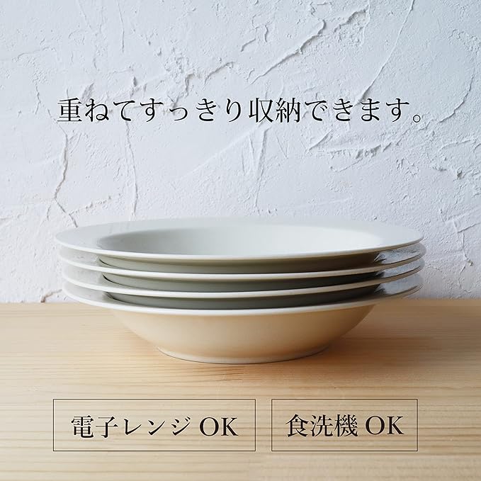 パスタやカレーはもちろん、深さがあるのでドレッシングをたっぷりかけたサラダや煮物など、汁気のあるお料理にもお使いいただけます。 様々なお料理と相性の良いお皿です。 リムがあるので配膳の際にも持ちやすく、お料理がこぼれにくいという実用性も兼ね備えています。
