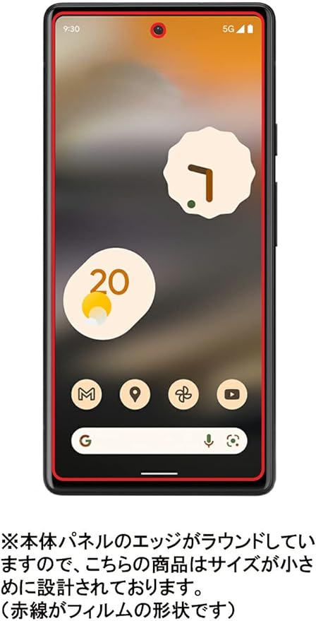 Google Pixel 6a 用 フィルムサイズ:専用サイズ(L) ※本体パネルのふちがラウンドしていますので、こちらの商品はサイズが少し小さめに設計されております。ご了承お願いいたします。