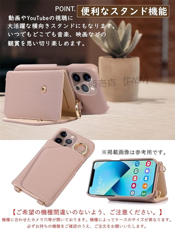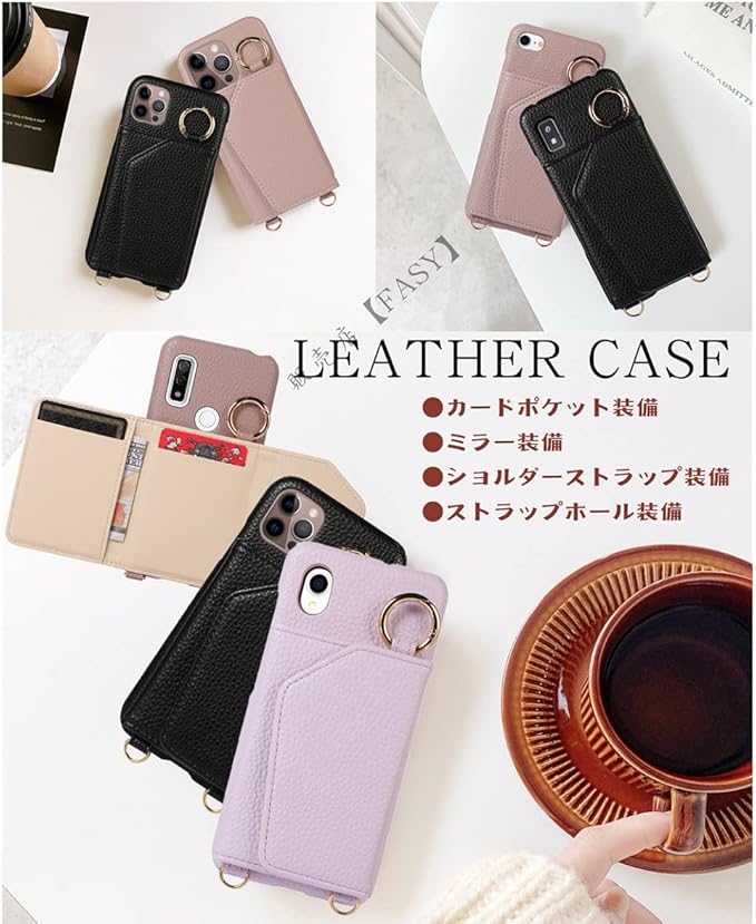 ● おすすめのポイントは使い勝手の良い収納力とショルダーストラップ付き。 長さが調節可能のショルダーストラップ付きでショルダーバッグ風にも首掛けにも出来る大人らしいスマホケースです。スマホケース、ミラー機能、お財布、ショルダーバックの多機能ケースの新登場。