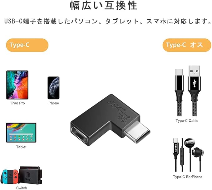 【幅広い互換性】USB-C端子を搭載したパソコン、タブレット、スマホに対応します。ケーブルの折り曲げ及び断線を有効的に防止できて、配線をスッキリと整理して、他の機材配置の邪魔にならないようにできます。