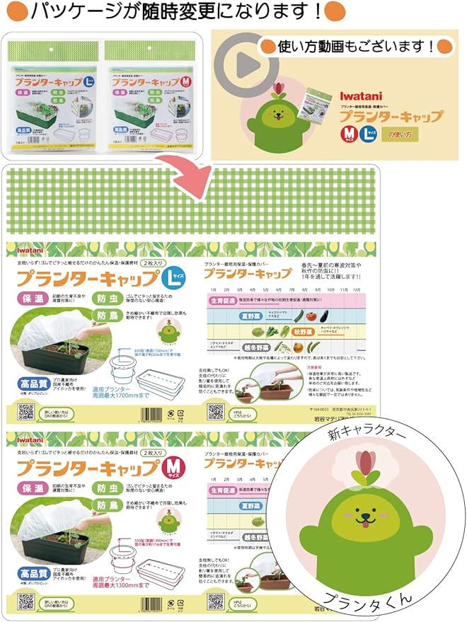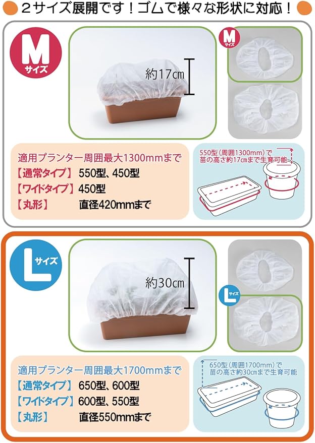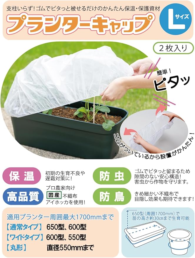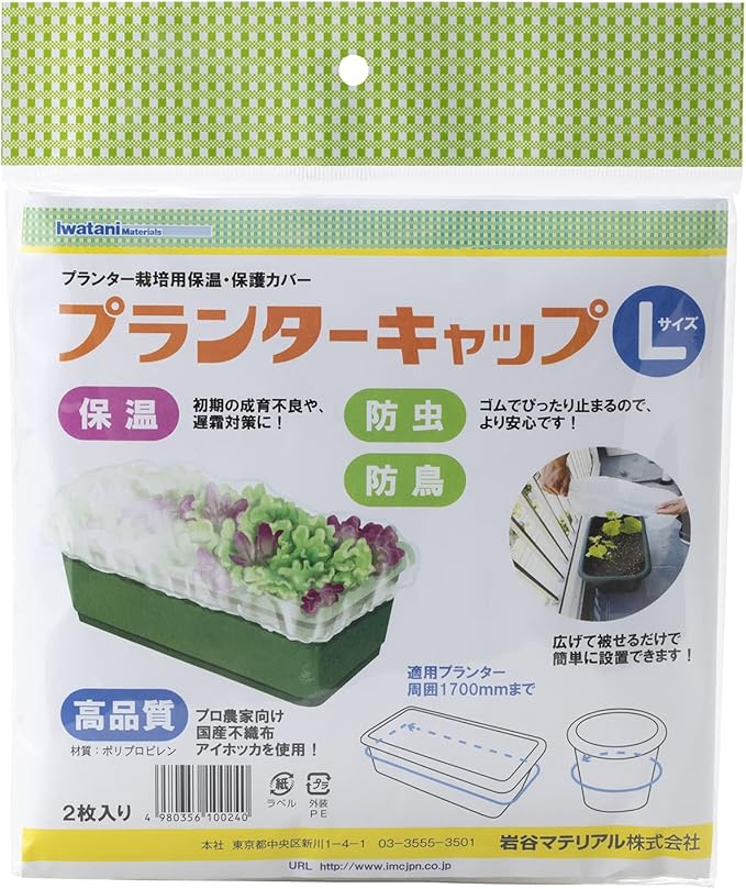岩谷マテリアル(Iwatani Materials) プランターキャップ Lサイズ 2枚入 / 袋 保温用不織布 初期生育促進 防虫 防鳥 プロ向け 国産不織布 アイホッカ 使用 ゴムでピタッと 簡単 設置 ワンタッチ 支柱不要 周囲最大1700mmまで 家庭菜園 プランター栽培 | oioioichan