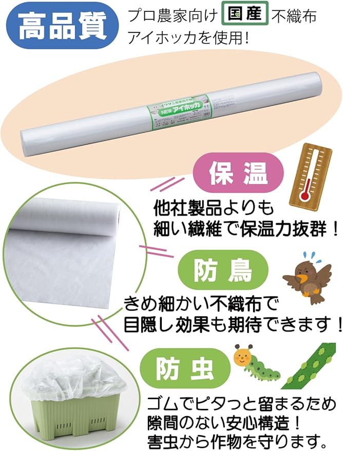 プロ農家向け\国産不織布/「アイホッカ」を使用しています。