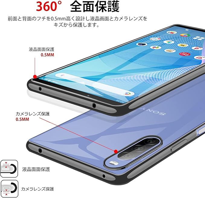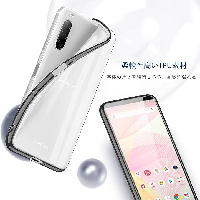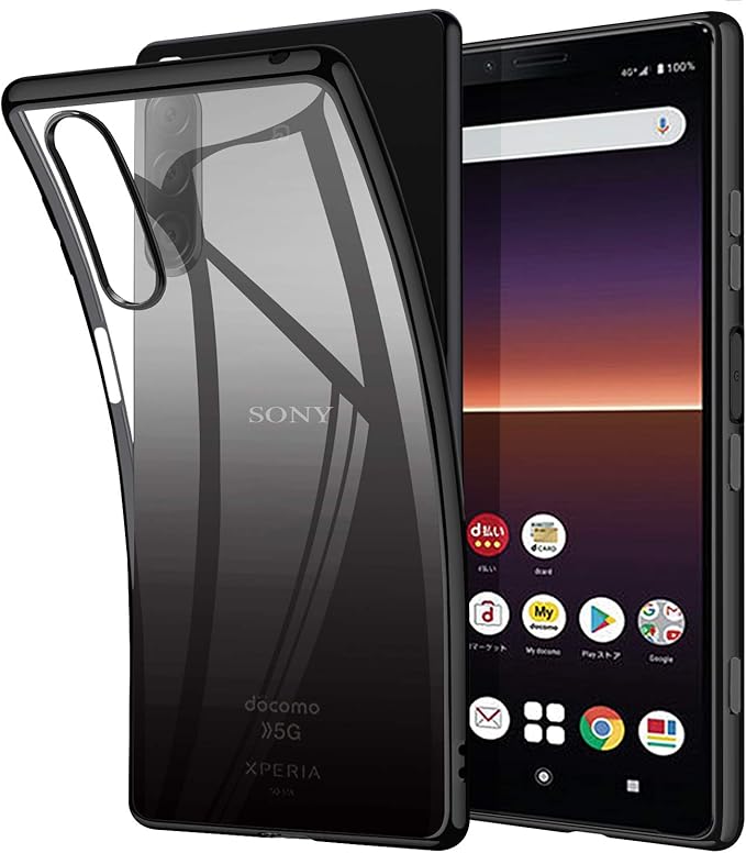 Xperia 10 II ケース so-41a カバー クリア 透明 耐衝撃 スリム TPU 薄型 シリコン 擦り傷防止 黄変防止 メッキ加工 ストラップホール付き Xperia10 II SOV43 カバー (ブラック) | oioioichan