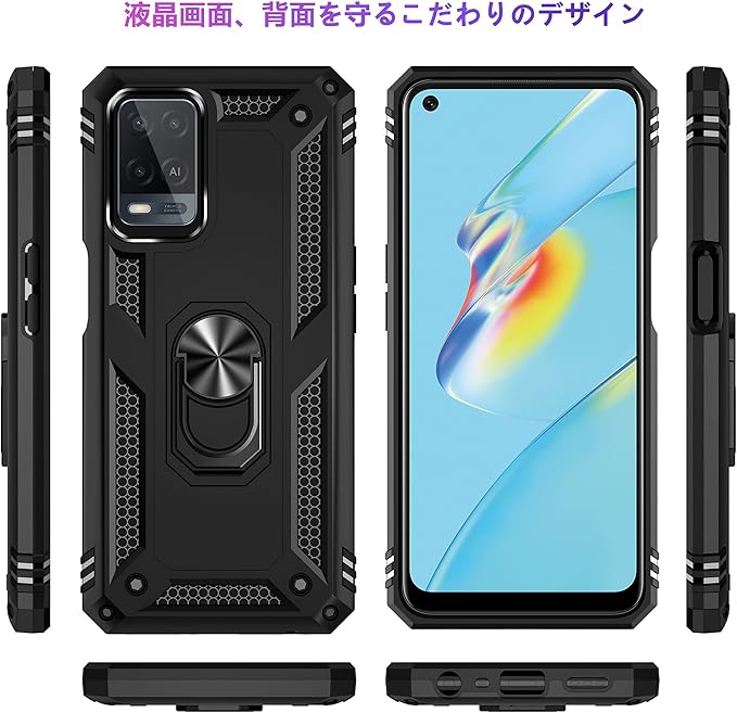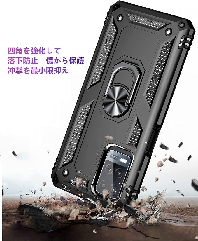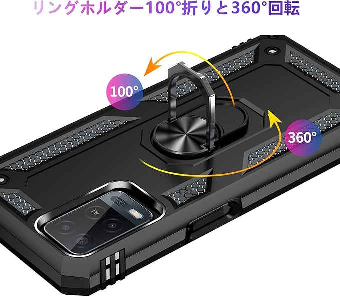 OPPO A54 5G ケース リング DINGXIN au OPG02 米軍MIL規格取得 耐衝撃 薄型 軽量 車載ホルダー対応 オッポa54 リング付き 360度回転 スタンド機能 TPU+PC 指紋防止 落下防止 擦り傷防止 取り出し易い (OPPO A54 5G, ブラック) | oioioichan