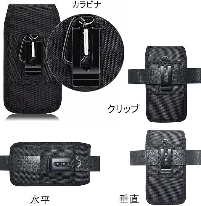 【装着&素材】スマホポーチは様々な幅のベルトに取り付けできます。留め具はマジックテープですぐにスマホを取り出して使うことができます。カラビナ付きなのでベルトループに装着してスマホを持ち運べます。ケース装着 5.5インチ以内のスマホあるいはほかのサイズ同じぐらいデジタルカメラなどの小物も何でも収納できます。高密度600Dナイロンで、衝撃から大切なスマホをしかっり守ることができる。撥水加工も施されて、防水・防汗性にもばっちりで、急な雨や水場でも安心してスマホを持ち運べます。軽量、良い手触り、汚れが付きにくく、耐久性に優れています。側面は弾力性があって、携帯は出入りが便利です。