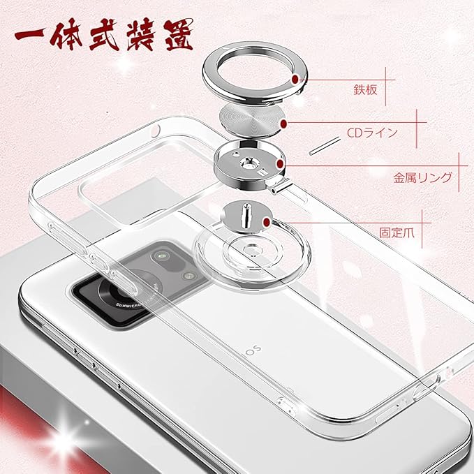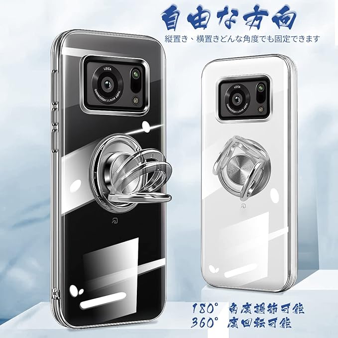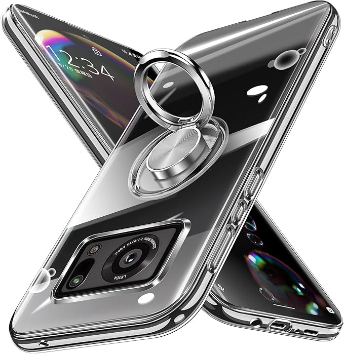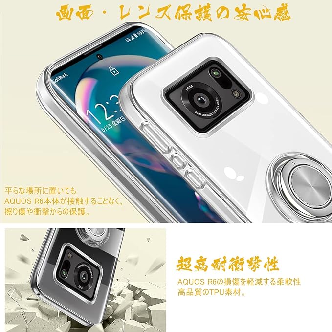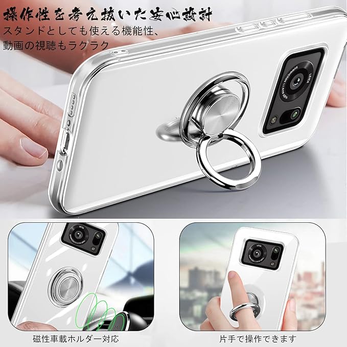 AQUOS R6 ケース リング 透明 クリア SH-51B カバー アクオスR6 スマホケース tpu 耐衝撃 シリコン 薄型 スタンド機能 車載ホルダー 衝撃吸収 リング付きケース (クリア) | oioioichan