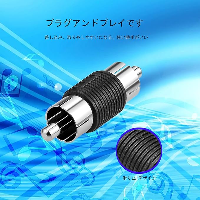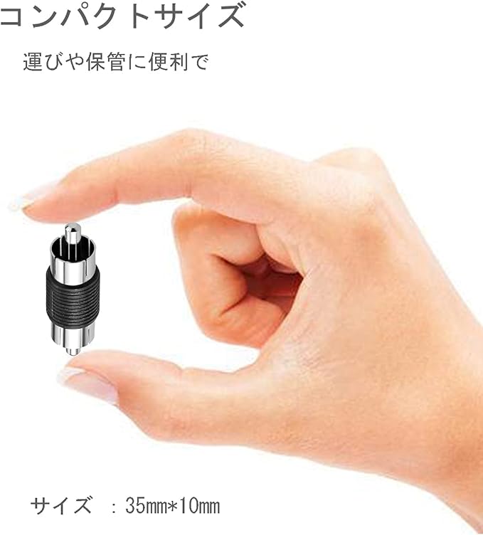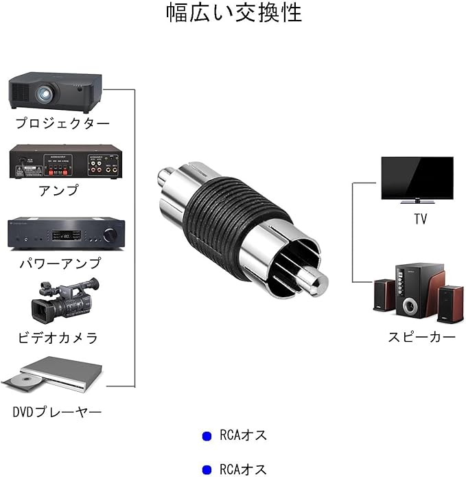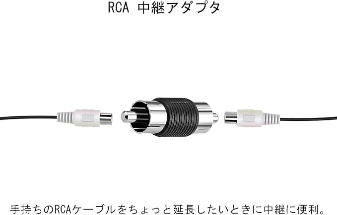 接続簡単:RCAオスーRCAオス中継アダプタです。手持ちのRCAケーブルをちょっと延長したいときに中継に便利。