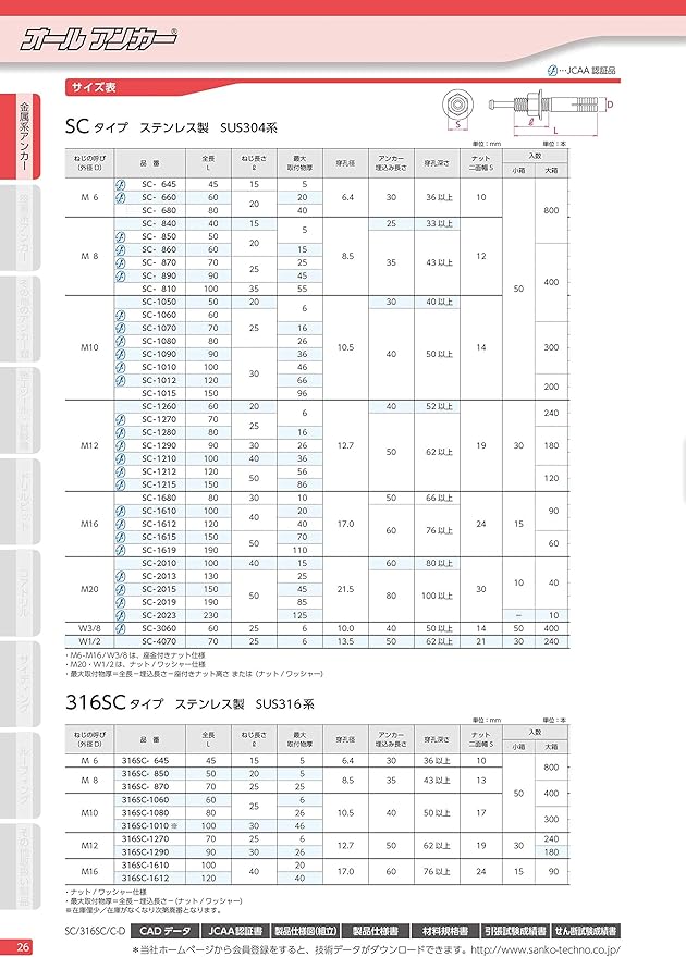 サンコーテクノ オールアンカー バラ売り 1本単位