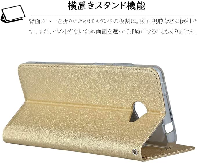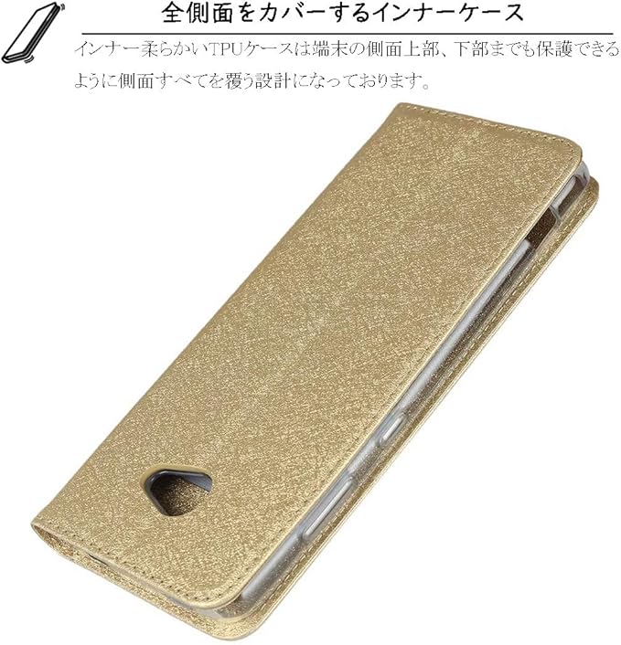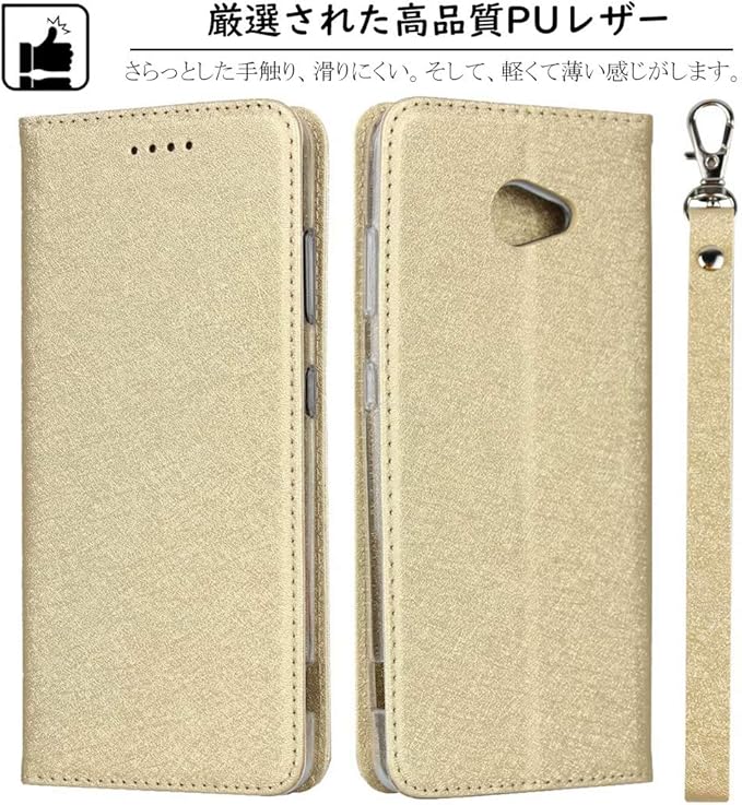 Elick BASIO4 KYV47 かんたんスマホ2 かんたんスマホ2+ 兼用 ケース カバー 薄型 高級PUレザー かんたんスマホ2 A001KC ケース 手帳型 かんたんスマホ2+ A201KC ケース 手帳型 マグネット式 ベルトなし ストラップ付き カード収納 京セラ A001KC ケース スマホケース ゴールド | oioioichan