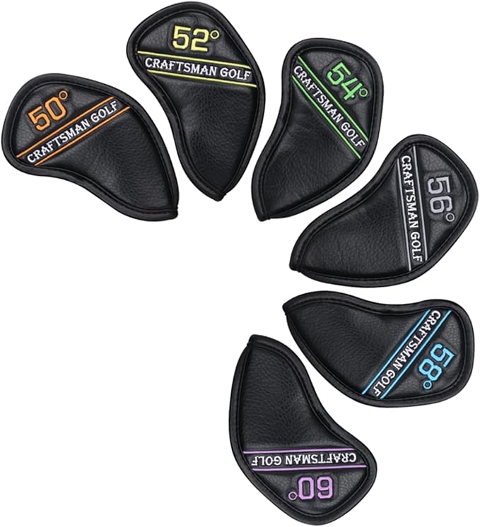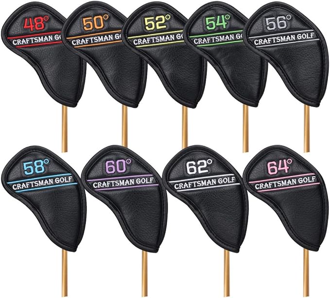 CRAFTSMAN(クラフトマン) ゴルフアイアンカバー ウェッジカバー ヘッドカバー 3~9、Pw、Aw、Sw、Lw、46 、48 、50 、52 、54 、56 、58 、60 、62 、64 単品/セット販売 カラフル数字 番号刺繍 マジックテープ開閉 合成皮革 ブラック/ホワイト | oioioichan