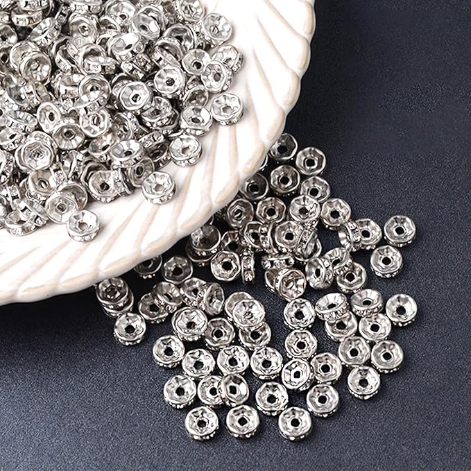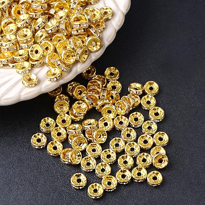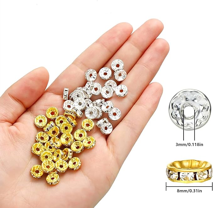 【BEAUTY PLAYER】ロンデル 8mm 平型 200個 ゴールド シルバー 各100個 ラインストーン付き スペーサービーズ メタル ビーズ アクセサリーパーツ ジュエリー 手芸 クラフト用品 手作り素材 DIY材料 (8mm) | oioioichan