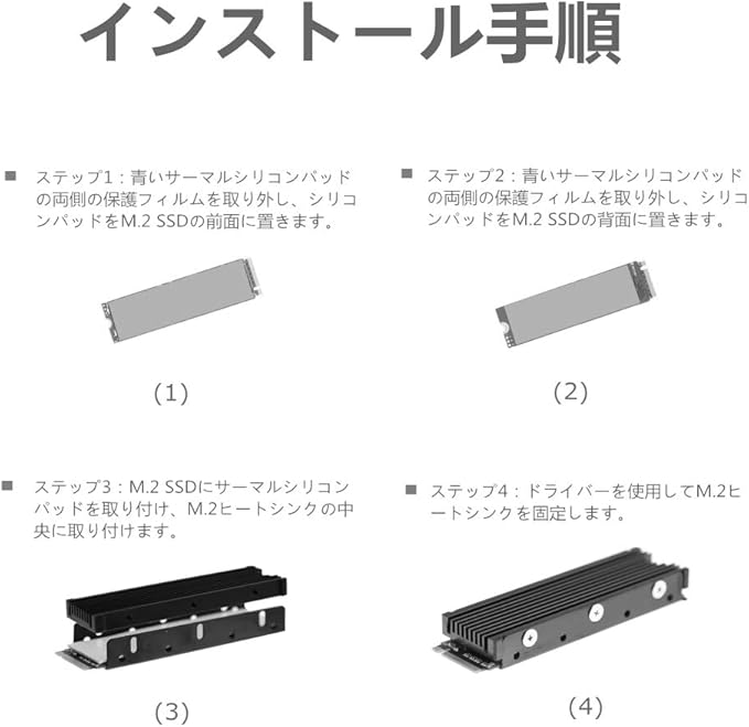 【独自のナノサーマルパッド】- 熱パッドはナノシリコン材料で作られており、優れた熱伝導性を備えています。 M.2 SSDの不均一な表面と互換性のある、十分に柔らかく、良好な延性。 SSD.ラベルに損傷を与えない、低粘度。