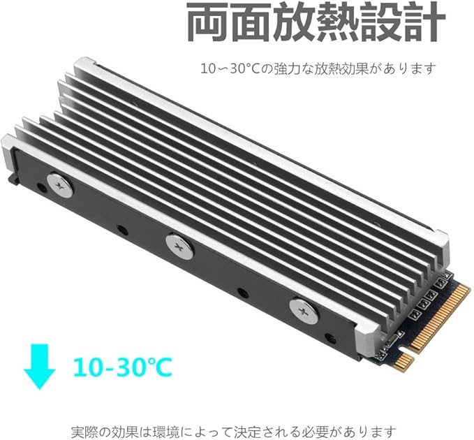 【両面冷却】-アルミニウム合金-溝設計、10 C-30 Cの冷却効果により、放熱面積を大幅に拡大(環境によって異なります)、M.2 SSDを安全な温度に冷却して回避過熱と調整、コンピューターのパフォーマンスの向上。