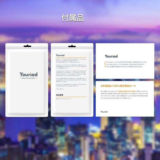 【商品コンセプトとYouriadに込めた思い】Youriad(ユーリアド)は代表の山口が2018年4月に立ち上げた東京発のブランドです。YouriadにはYouと、とても大きな数というMyriadをかけ合わせて、皆さんと無限の可能性をつなげるという意味を込めております。商品コンセプトは快適なスマホライフを提供するクリアケース、というコンセプトです。ただ、質のいいクリアケースを提供するだけではなく、受け取ってから、使い続けてもらうところまで想像しながら商品設計をしました。ぜひご利用いただけると幸いです。