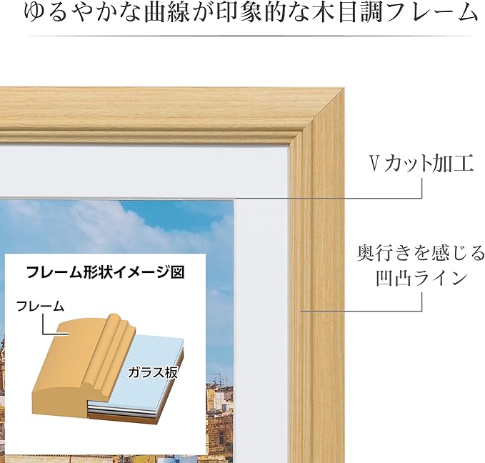 奥行き感を与え作品をより引き立てるVカット(断面斜め裁断加工)マット