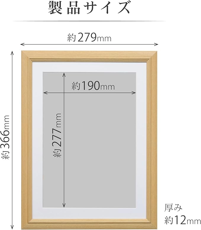 マット外寸法 : W245 H332mm、マット中抜き寸法 : W190 H277mm