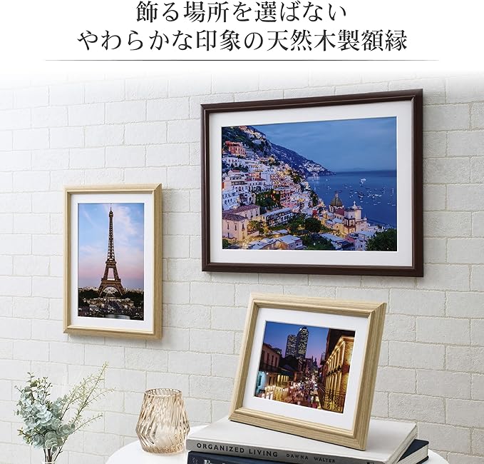 ゆるやかな曲線で温かみ溢れるお手頃価格の木製フォトフレーム