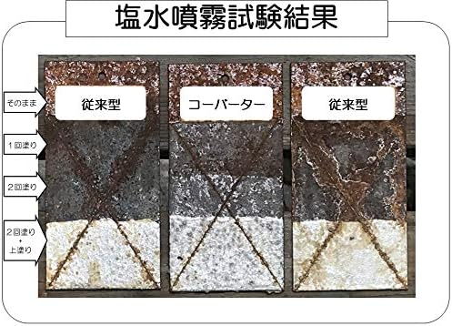塗布面積: 1㎡/200cc, 18㎡/3.8L。 乾燥時間:酷い錆びには30分乾燥後に二度塗り。着色塗料での再塗装は12-24時間。