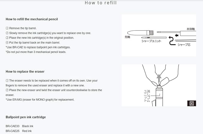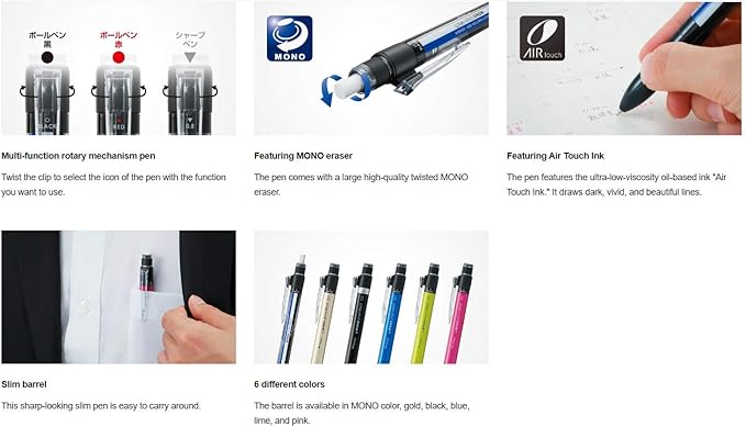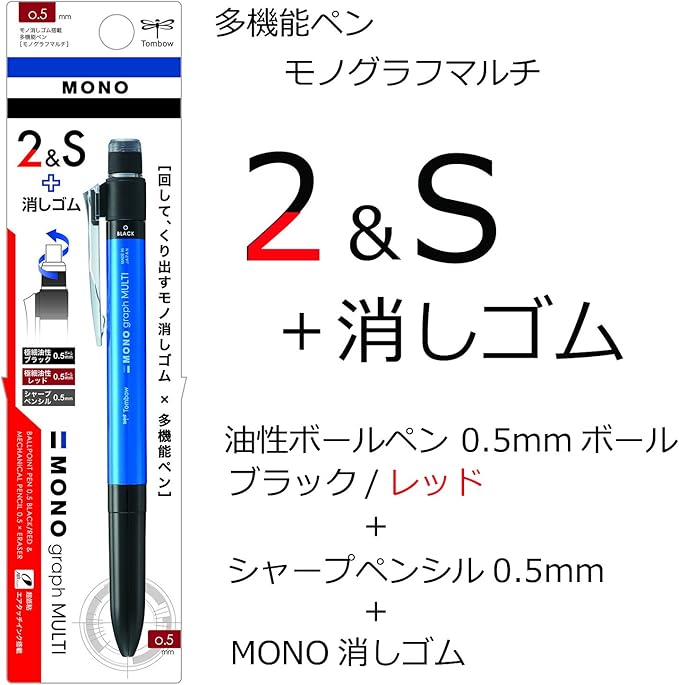 【特長】モノ消しゴム搭載の多機能ボールペン