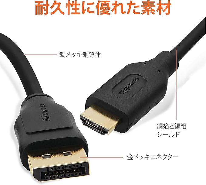 DisplayPort - HDMIケーブル: コンピューターをHDTVやHDモニター、プロジェクターに接続し、音声/映像をストリーミングできます。
