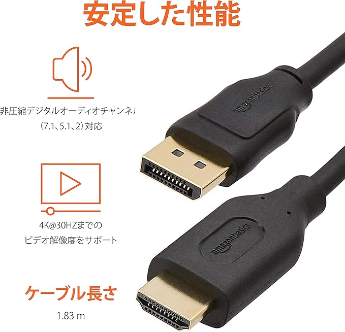 DisplayPortからHDMIへの変換のみ(HDMIからDisplayPortへの変換は不可)。USBポートへの接続はできません。ケーブル長1.8m。対象商品
