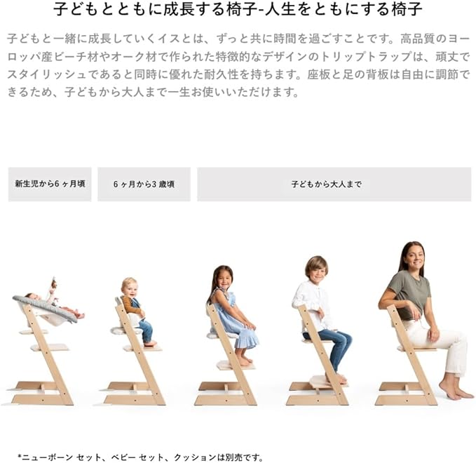 本製品にトリップトラップチェア、ベビーセットは付属致しておりません。