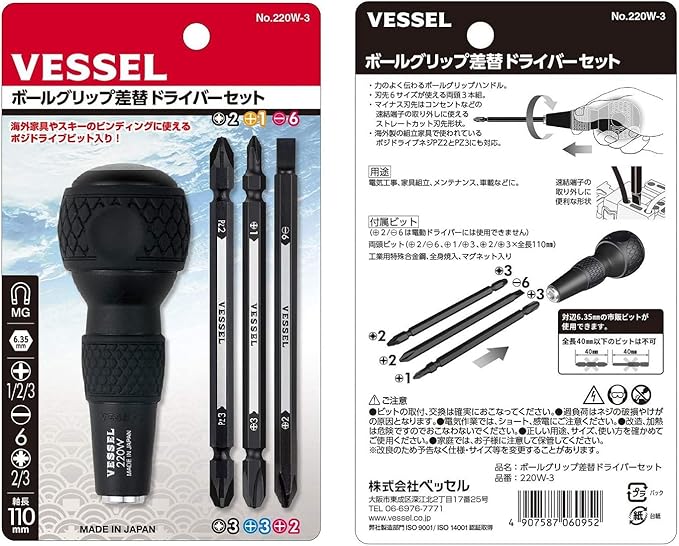 セット内容:ボールグリップ、差替ビット:+1/+3,+2/-6,PZ2/PZ3…各1本