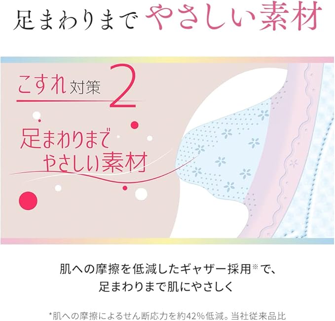 足まわりまでやさしい素材:肌への摩擦を低減したギャザー採用※2。