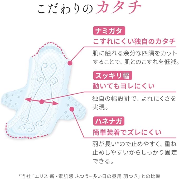 【ハネナガ】簡単装着でズレにくい:羽が長い※3ので止めやすく、重ね止めしやすいからしっかり固定できる。