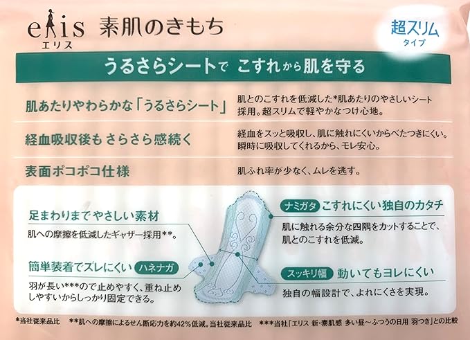 エリス 素肌のきもち 超スリム 羽つき 27cm(特に多い昼用)17枚 4個セット | oioioichan