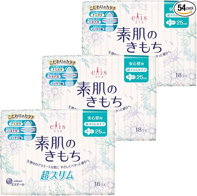 モデル名 エリス 素肌のきもち 超スリム 羽つき (多い昼用) 18枚 3パック 【まとめ買い】