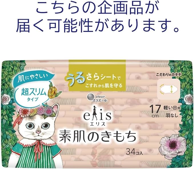 大王製紙 エリス 素肌のきもち 超スリム (軽い日用) 羽なし 17cm 34枚
