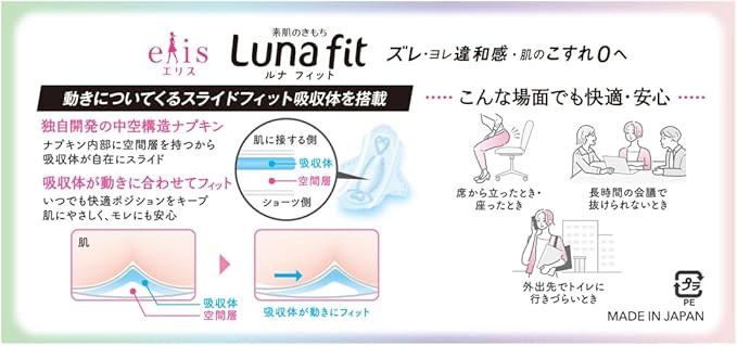 ズレ・ヨレ違和感・肌のこすれ0へ。動きについてくるスライドフィット吸収体を搭載。