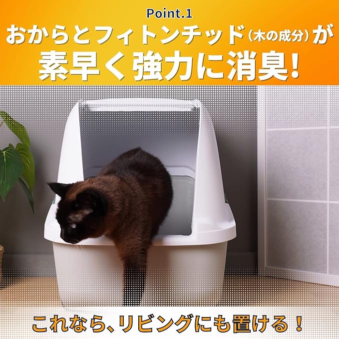 おからとフィトンチッドでW消臭。しっかり固まりトイレに流せる