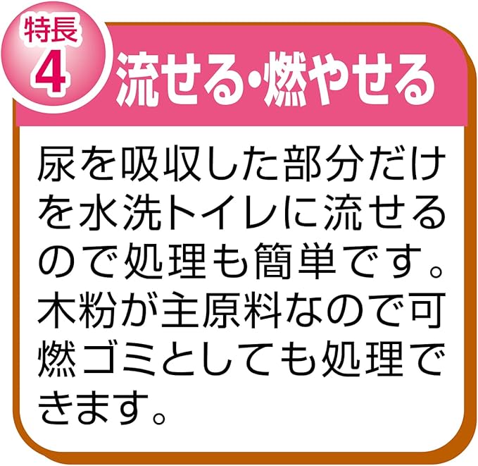 すばやく小さく固まり、水洗トイレに流せるので処理も簡単