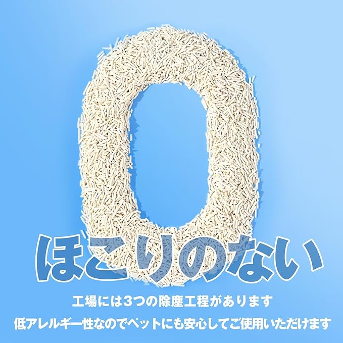 【粉塵が立たない】このおから猫トイレ砂は粉塵が立ちません。猫と掃除している人間が粉塵を吸い込まないため、健康に害を及ぼしません。掃除も楽です
