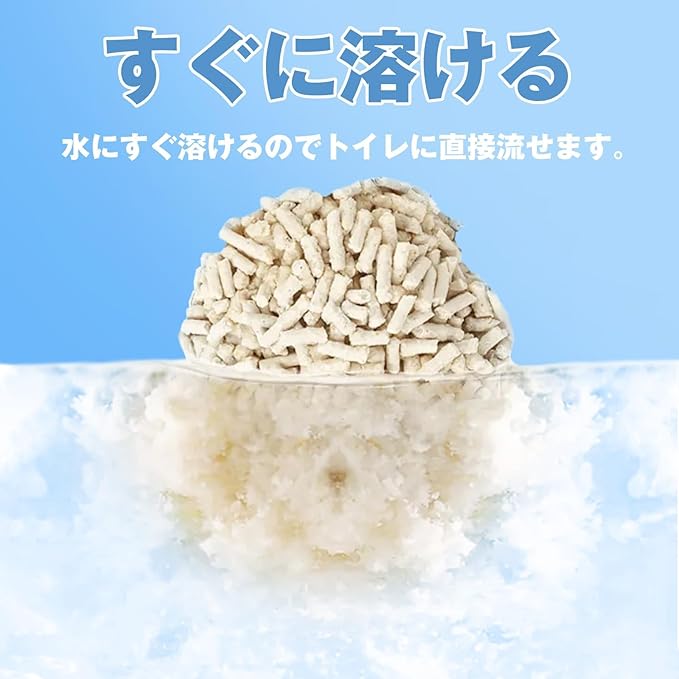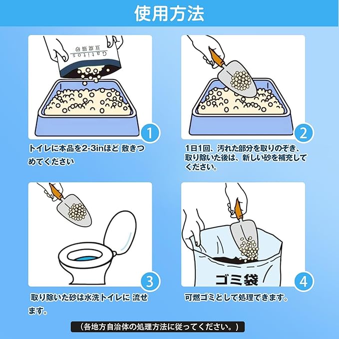 【ゴミ処理は簡単】Gatitos猫砂は2つの処理方法が選択可能です。トイレに直接流せるか、燃やせるゴミとして捨てることができます。環境に優しいです