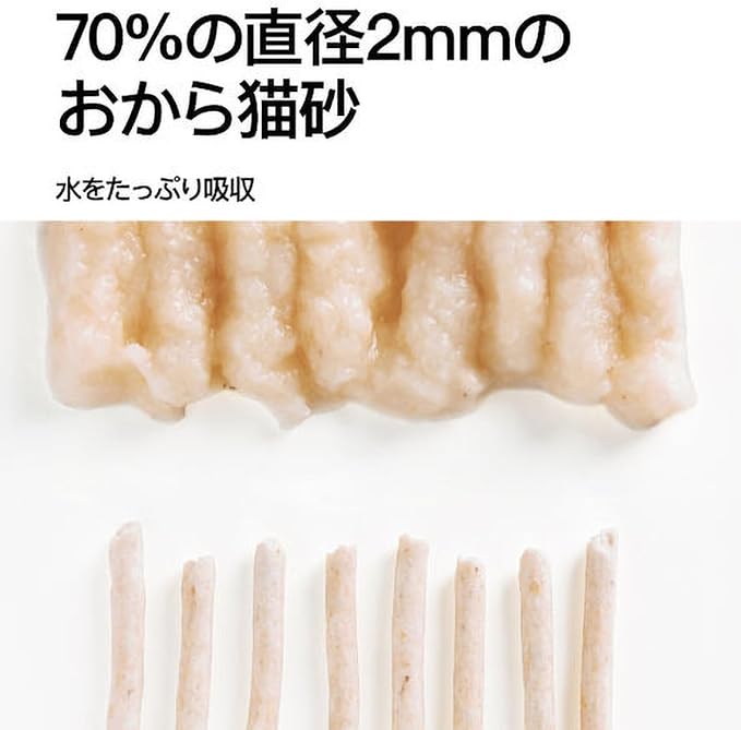天然素材: おからを主原料とし、大豆由来のフラボノイドの力で消臭効果を発揮。安心して使用可能。