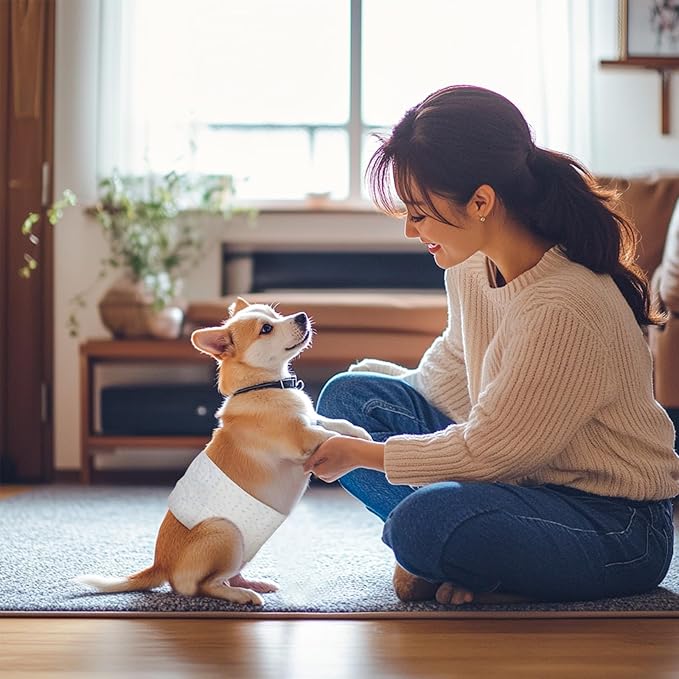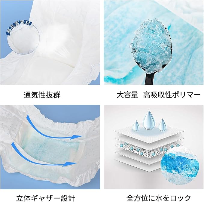 【驚異の吸収力】高分子吸収材と立体モレ防止ギャザーを採用し、オシッコを素早く吸収してゼリー状に固めるので、漏れを防ぎます。動きやすさを重視した超薄型デザインで、ワンちゃんも快適に過ごせます。