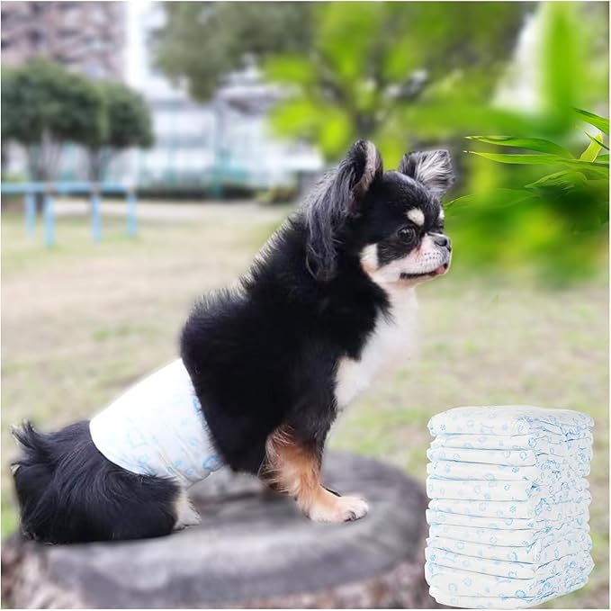【製品仕様】犬おむつ 男の子用 一個(12枚入り) カラー:柄あり(犬柄) Sサイズ: 胴周り: 15~30㎝、適応体重:1.5~4kg 素材:表面材/ポリエチレン、ポリエステル不織布 吸水材/綿状パルプ、吸水紙、高分子吸収材 防水材/ポリエチレンフィルム 伸縮材/ポリウレタン 面テープ/ポリプロピレン、不織布 マジックテープ式なので、固定用のマジックテープは大きくて、愛犬に適切なサイズに調整できます。伸縮性の縁で、わんちゃんの動きにもピッタリフィットします。