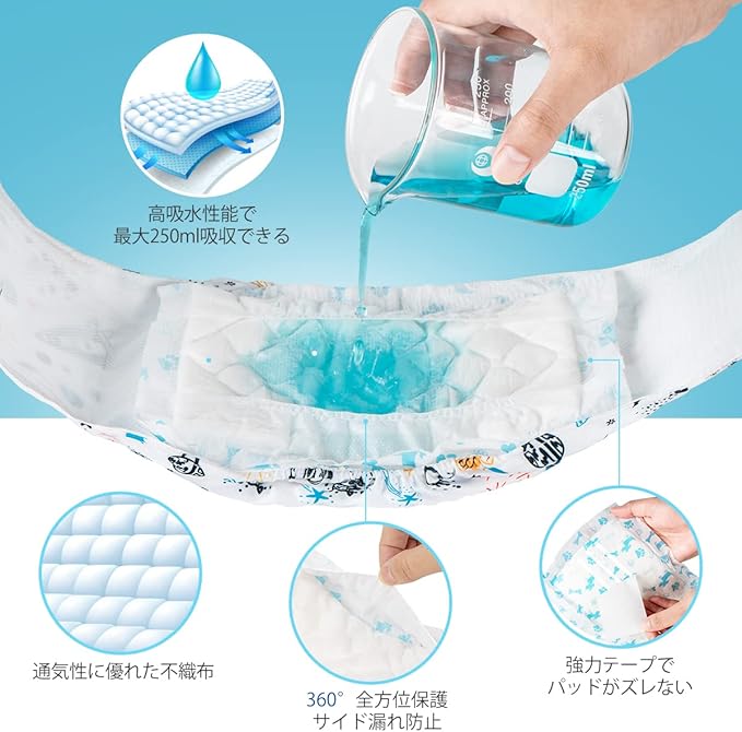【通気性抜群】pet softおむつパッドは裏地に通気性の高い素材が使われており、暑い夏場でも蒸れなく、絹のような優しい肌触りでふわさら吸収ライナーを採用し、長時間使用でもムレを防いでお肌さらさら!