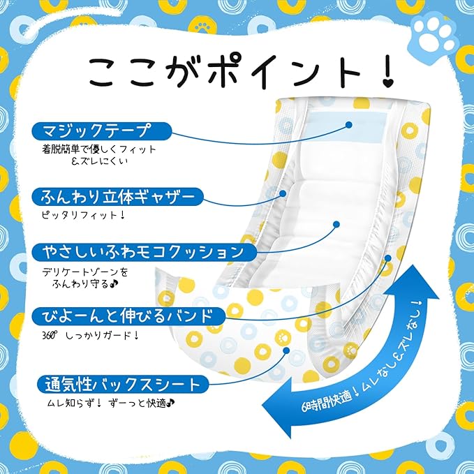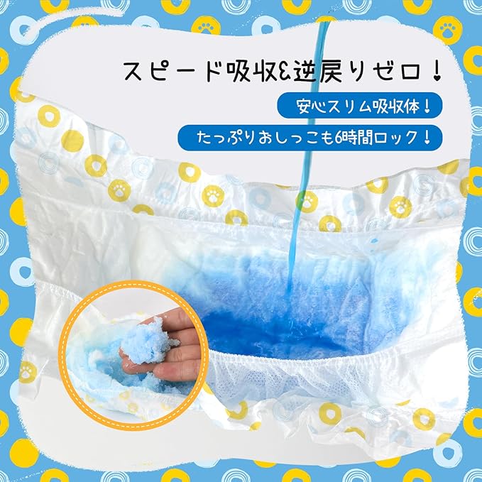 【6時間ロングガード】スリムなのにパワフル!高吸収体がたっぷり尿も6時間しっかりロック。長時間のお出かけやお留守番でも安心の吸収力です。